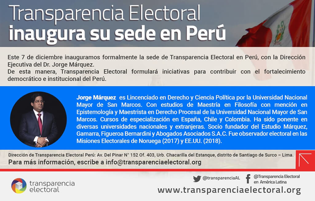 Transparencia Electoral inaugura su sede en Lima, Perú