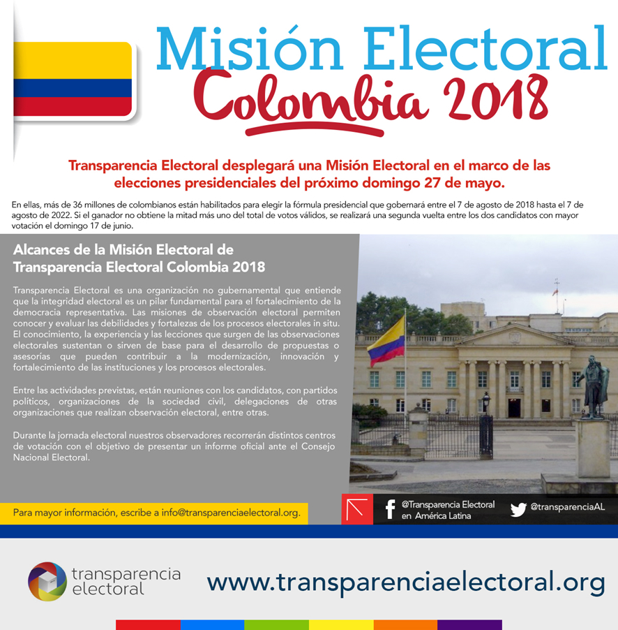 Transparencia Electoral realizará una Misión de Observación Electoral en las elecciones de Colombia