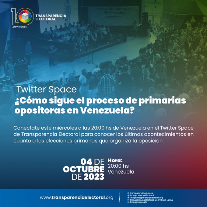 Transparencia Electoral celebró un Twitter Space para hablar sobre el proceso de elecciones primarias que tendrán lugar en Venezuela. Durante la conversación se abordaron los últimos acontecimientos en cuanto a la organización del proceso de las elecciones primarias opositoras, que no ha estado exento de obstáculos y limitaciones.