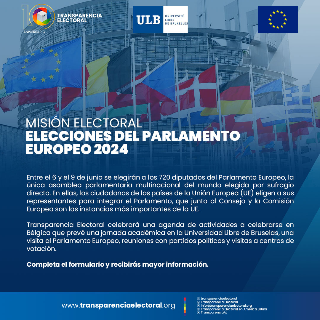 Transparencia Electoral celebrará una agenda de actividades a celebrarse en Bélgica que prevé una jornada académica en la Universidad Libre de Bruselas, una visita al Parlamento Europeo, reuniones con partidos políticos y visitas a centros de votación.