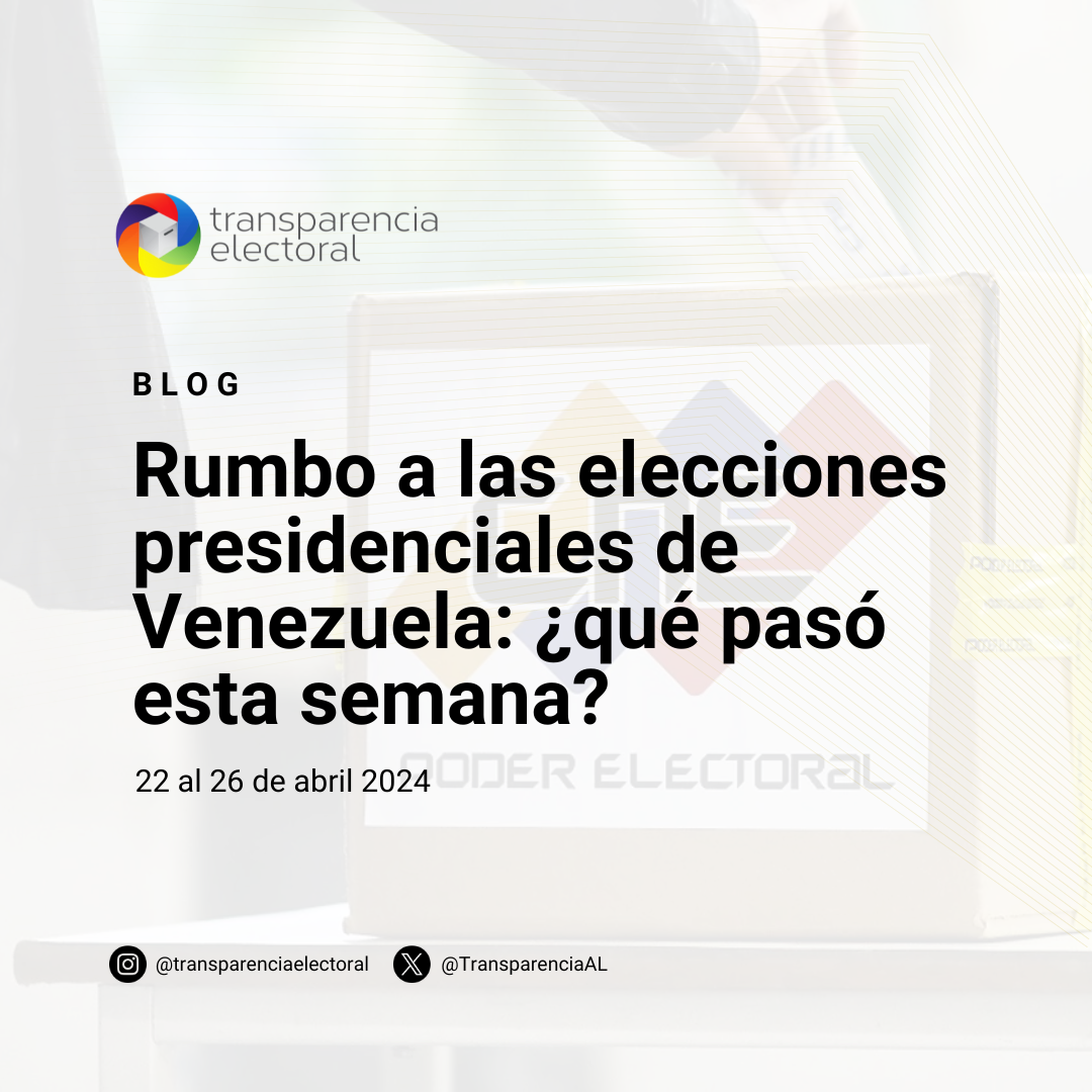 A lo largo de esta semana (22-26 de abril), tuvieron lugar múltiples sucesos en el camino hacia las elecciones presidenciales de Venezuela del 28 de julio, cuando cerca de 21 millones de ciudadanos serán convocados a elegir a su próximo presidente.