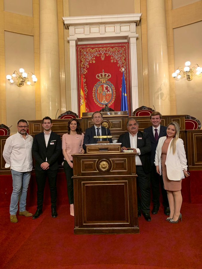 A continuación, la comitiva fue recibida en la Cámara de Senadores del Congreso de España por el senador del Partido Popular, Gonzalo Robles. Los miembros de la misión realizaron un recorrido por los salones más emblemáticos del recinto, y recibió una breve charla sobre el funcionamiento del Poder Legislativo.