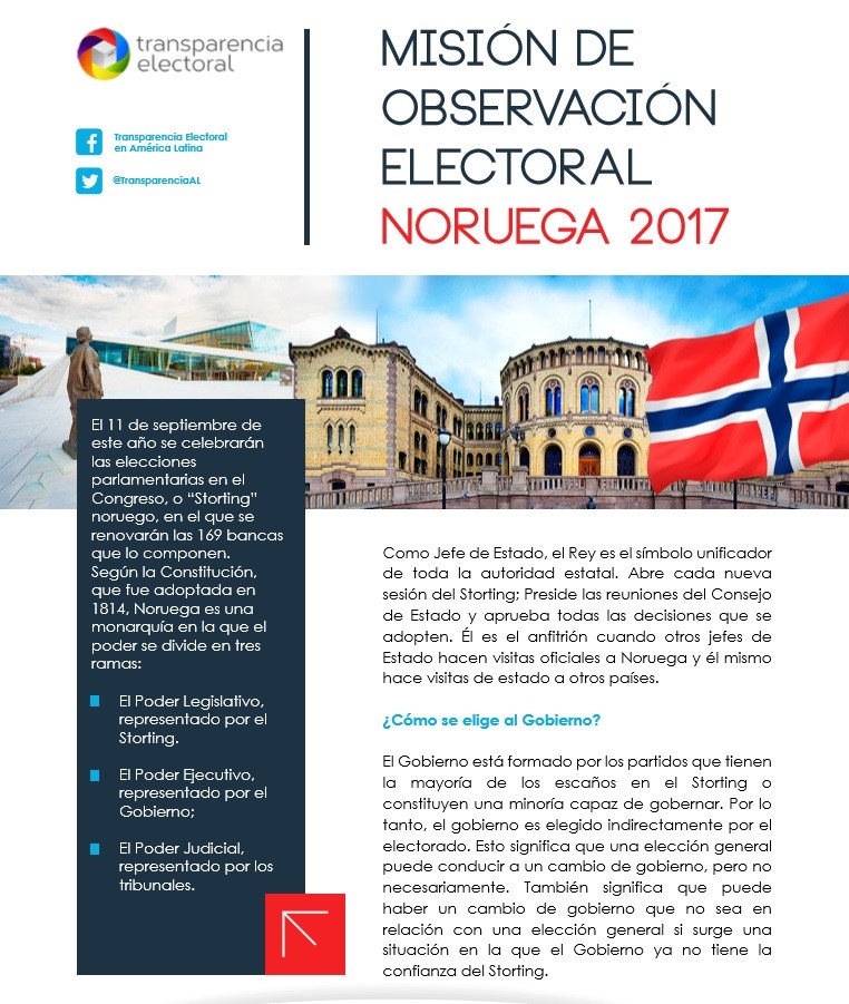 Transparencia Electoral desplegará una Misión de Observación Electoral en Noruega