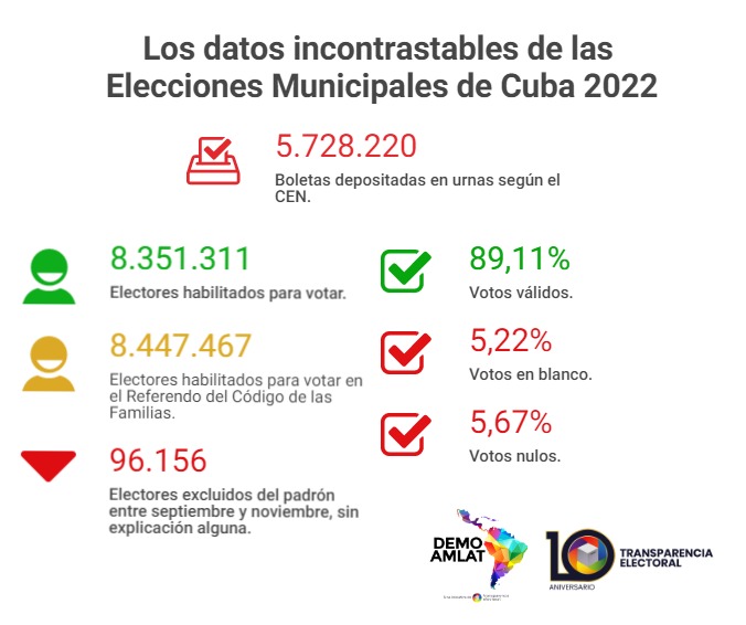 En un sistema en el que solo se puede ratificar a los candidatos del oficialismo, el Partido Comunista de Cuba se ha escudado en los altos porcentajes de participación. De cara a las elecciones a diputados a la Asamblea Nacional del Poder Popular (2023), órgano que designa al Consejo de Estado y al presidente, es fundamental que el CEN permita la auditoría tanto de los ciudadanos organizados como de entidades internacionales especializadas en gobernanza electoral.