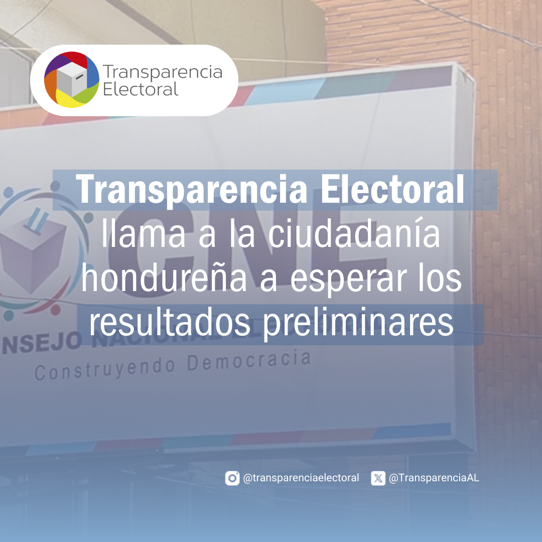 Transparencia Electoral llama a la ciudadanía hondureña a esperar los resultados preliminares