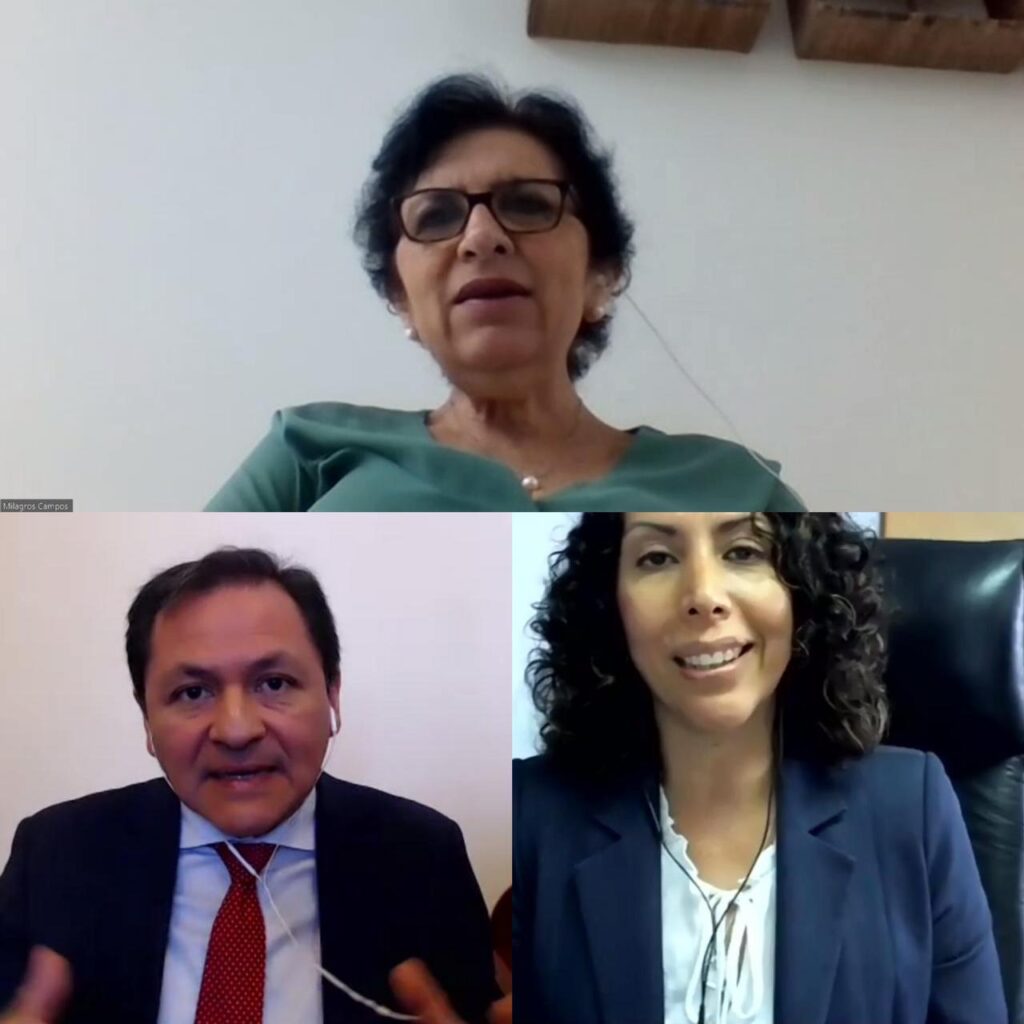 El mismo contó con las exposiciones de Milagros Campos – Profesora de la Pontificia Universidad Católica del Perú y la Universidad San Martín de Porres; Miembro del Consejo de Expertos de Transparencia Electoral; autora del capítulo «Perú: reforma política y elecciones en tiempos de covid-19»; Jorge Jauregui – Abogado, ex asesor en materia electoral de la Comisión de Constitución y Reglamento del Congreso de la República del Perú; y Katiuska Valencia Segovia – Secretaria Ejecutiva de la Oficina de Procesos Electorales – ONPE.