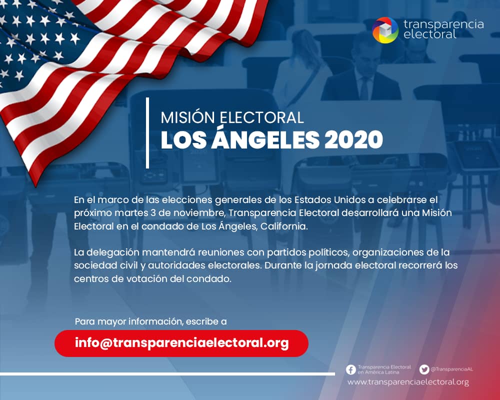 El próximo 3 de noviembre de este año se celebrarán las elecciones generales de los Estados Unidos y Transparencia Electoral celebrará una Misión Electoral en el Condado de Los Ángeles, California.